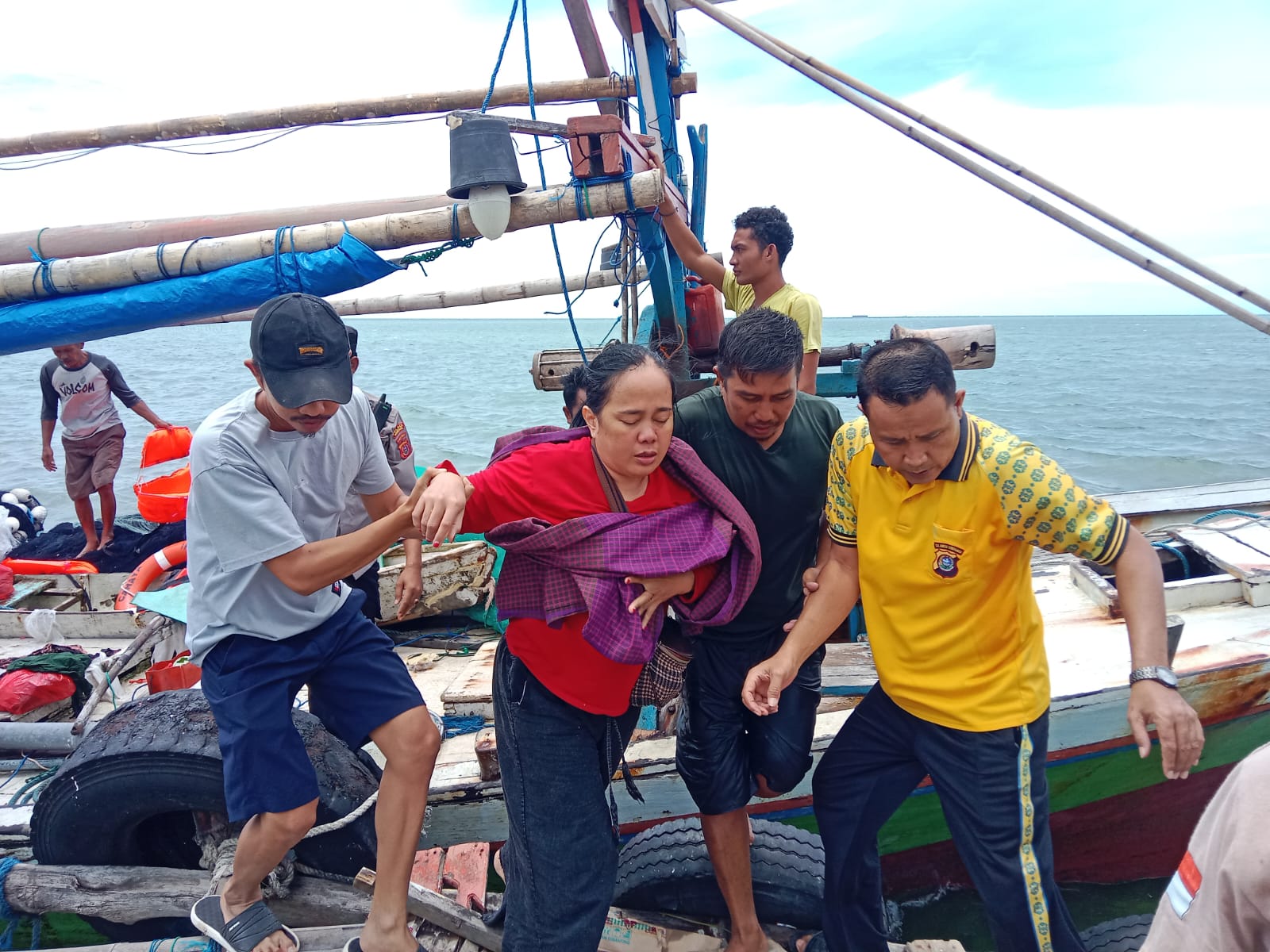 Pada pukul 08.00 Wita, nahkoda melihat sebuah kapal nelayan yang tengah mencari ikan. Ia segera mengarahkan kapal mendekat untuk meminta pertolongan. Seluruh penumpang dan kru kemudian dievakuasi ke kapal nelayan tersebut sebelum kondisi kapal semakin miring dan akhirnya tenggelam.