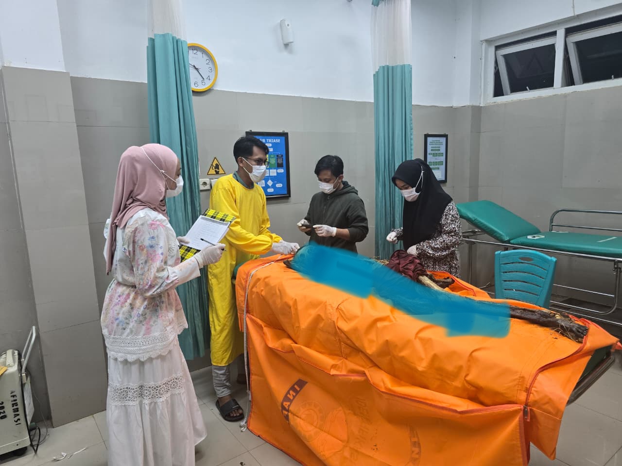 Jenazah lalu dievakuasi ke Puskesmas Lombakasi untuk dilakukan visum luar. Dari hasil pemeriksaan medis yang kemudian dikonfirmasi kepolisian, tidak ditemukan tanda-tanda kekerasan pada tubuh korban. Kapolsek menegaskan, “Dari kondisi kerangka dan hasil pemeriksaan luar, diperkirakan korban telah meninggal sekitar dua minggu sebelum ditemukan. Jenazah dipastikan berjenis kelamin perempuan.”
