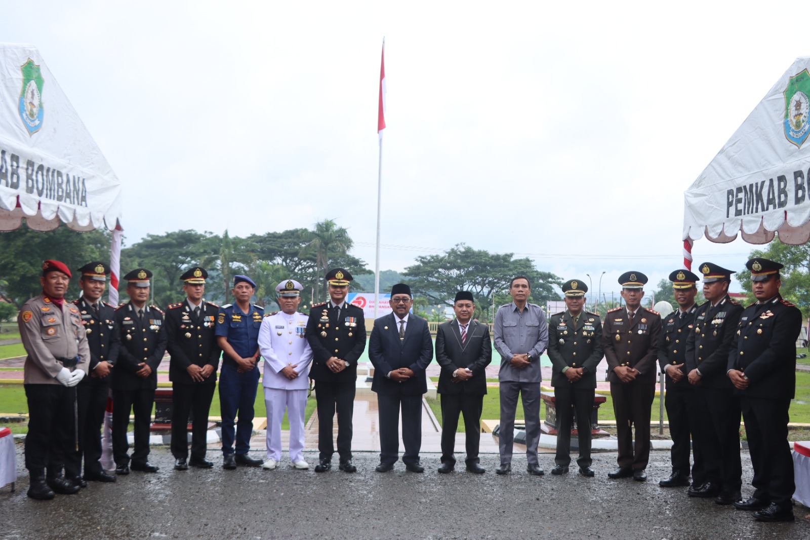 Hadir dalam barisan kehormatan sejumlah tokoh penting daerah, antara lain Bupati Bombana Ir. H. Burhanuddin, M.Si, Wakil Bupati Ahmad Yani, S.Pd, M.Pd, Ketua DPRD Bombana Iskandar, S.P, hingga jajaran Forkopimda lainnya. Kehadiran para pejabat, TNI, Polri, pelajar, dan elemen masyarakat menggambarkan kuatnya kolaborasi lintas sektor di Kabupaten Bombana.