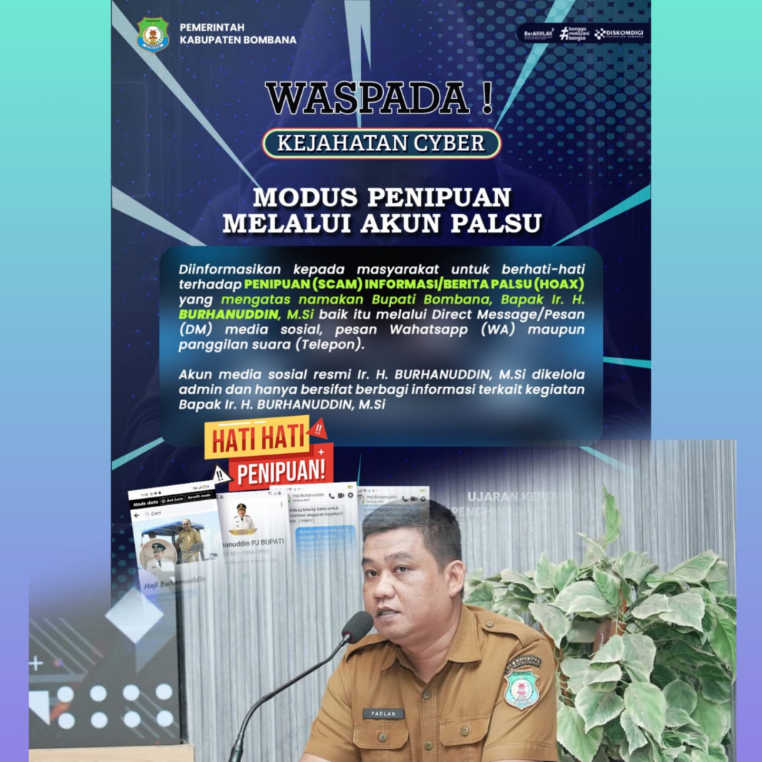 “Jika masyarakat menerima pesan dari akun yang mengatasnamakan pejabat, jangan panik atau langsung menuruti. Kami sarankan untuk segera melakukan verifikasi ke instansi terkait atau melalui kanal resmi Pemerintah Kabupaten Bombana,” ujarnya.