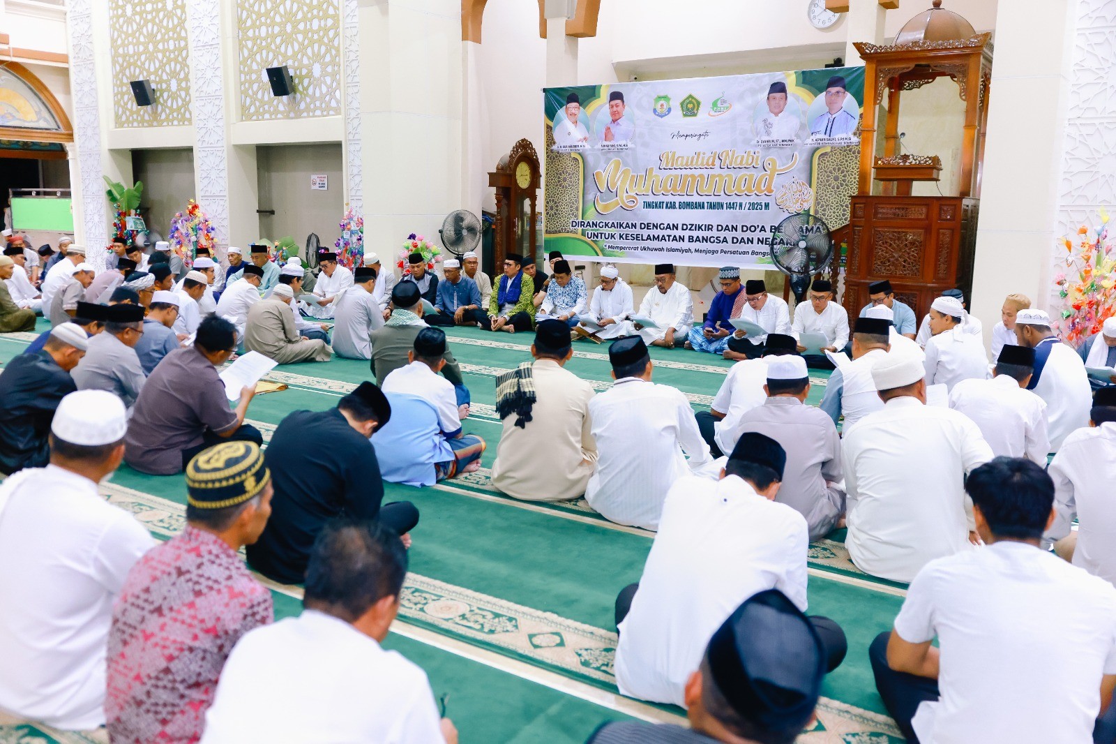 Bombana,  – Pemerintah Kabupaten Bombana bersama Panitia Hari Besar Islam (PHBI) menggelar peringatan Maulid Nabi Muhammad SAW 1447 Hijriah yang dirangkaikan dengan dzikir dan doa bersama untuk keselamatan bangsa dan negara. Kegiatan ini berlangsung khidmat dan meriah di Masjid Nurul Iman, Kasipute, Kamis pagi, dengan mengangkat tema “Mempererat Ukhuwah Islamiyah, Menjaga Persatuan Bangsa”. 4 September 2025