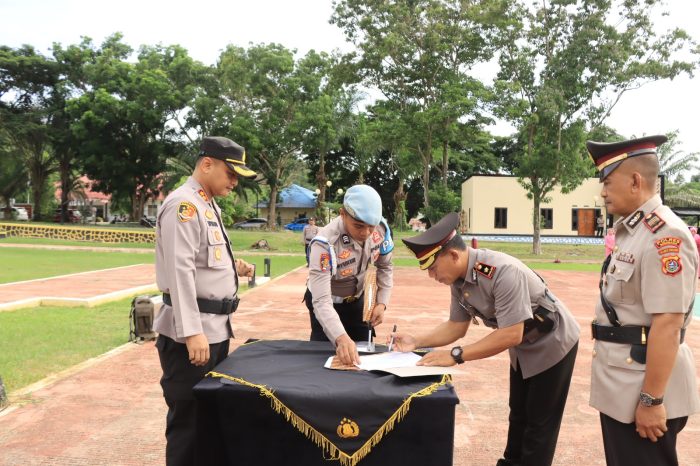 Pejabat yang melakukan serah terima jabatan diantaranya Kabag Ren Polres Bombana Kompol Susanto, S.E kepada AKP Ilham Tahir.