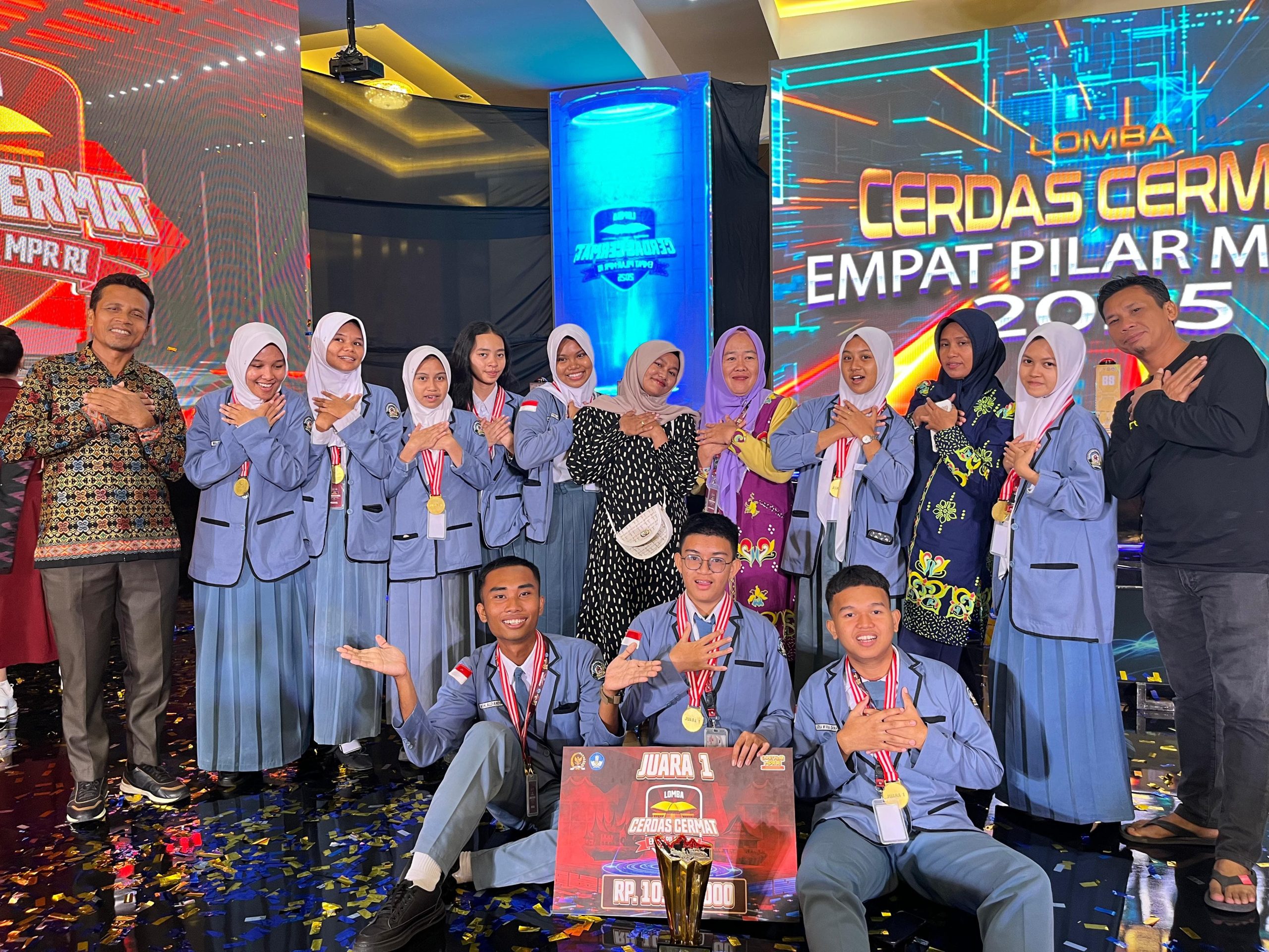 Kendari , A-1.Info / – Sebuah capaian luar biasa kembali ditorehkan oleh dunia pendidikan Sulawesi Tenggara, kali ini datang dari SMAN 3 Kabupaten Bombana yang berhasil mengukuhkan diri sebagai juara pertama dalam ajang bergengsi Lomba Cerdas Cermat (LCC) Empat Pilar MPR RI 2025 tingkat Provinsi Sulawesi Tenggara. Kompetisi yang digelar di Hotel Fortune & Convention Kendari pada Sabtu, 24 Mei ini menjadi ajang unjuk kemampuan intelektual yang mempertemukan sebelas sekolah unggulan dari berbagai daerah di provinsi tersebut. Namun, SMAN 3 Bombana tampil paling bersinar.